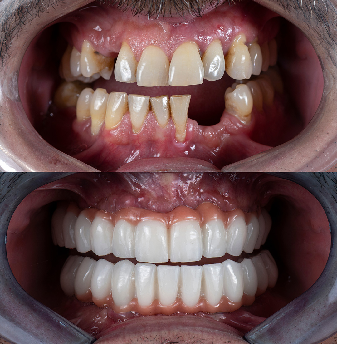 ● Is custom designed to fix onto 4-6 implants per arch (upper and/or lower jaw).